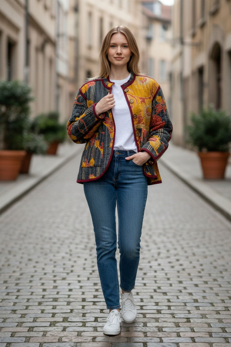 One-Of -A -Kind Reversible Blazer Style Hand Stitched Jacket 027